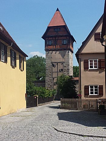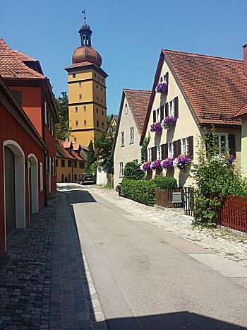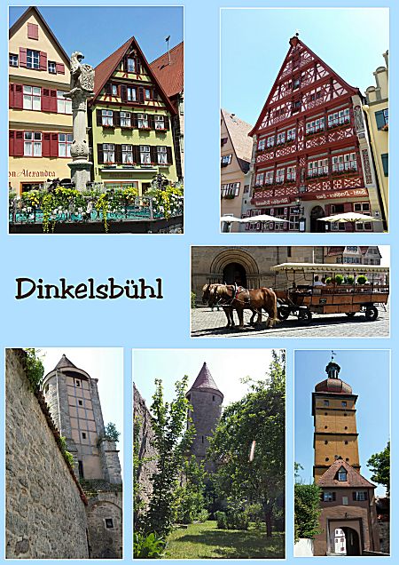Het plaatsje Dinkelsbühl is een mooi stadje met een complete middeleeuwse stadsmuur met 16 torens, bastions en 4 stadspoorten. Leuk om daar te wandelen. Ook heel veel mooie vakwerkhuizen en andere oude gebouwen in de Altstad en marktplein. Het stadje heeft nog heel veel historisch in zich. Zoals onder andere de Munsterkerk St.-Georg (1448-1499) wat een van de mooiste hallenkerken met een Romaans torenportaal. Je kunt ook langs de buitenkant lopen door het stadspark.