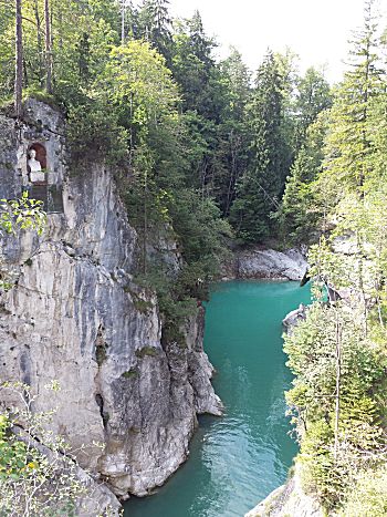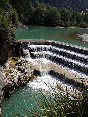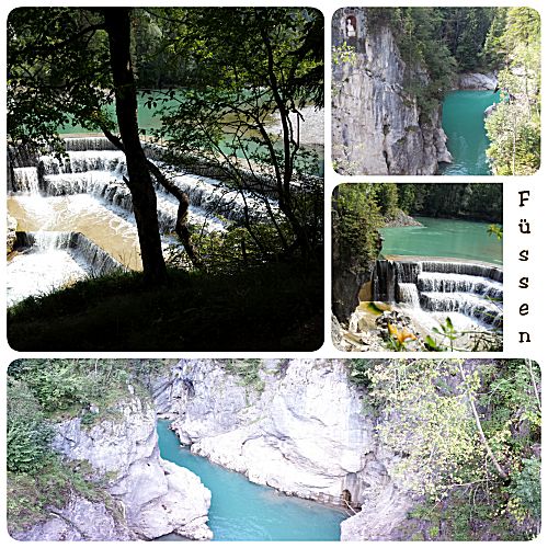 Ga ook zeker even kijken bij de Lechfall. Een gemaakte waterval bij een prachtig uitzichtpunt op een brug. Vooral de andere kant van de waterval ziet er adembenemend uit. Je kunt er lopend komen vanuit het centrum maar er is ook een kleine parkeerplaats dichtbij de brug. Maar die is meestal al snel vol dus je moet dan veel geluk hebben om een plekje te vinden.We hebben er een flink tijdje gelopen en hebben daarna koffie gedronken toen we weer bij de camper waren. Maar omdat we ook gehoord hadden van de waterval bij de Lech zijn we daar ook maar naar toe gaan wandelen. Dat wandelen viel nog tegen want met de berg van gisteren in de benen moesten we nu weer veel omhoog en naar beneden lopen en dat voel je best wel. Maar het was de moeite waard want het zag er erg mooi uit. Vooral de imposante rotsen waar het water tussendoor liep zagen er prachtig uit.