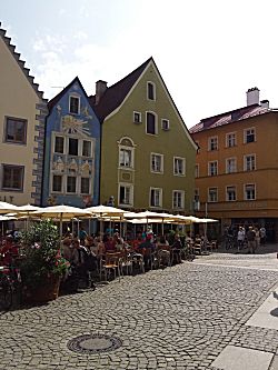 Het is een prachtig dorpje en ook daar was weer een slot. In dit geval het Hohes Schloss Füssen! Daar hebben we ook weer een tijdje rondgelopen. Apart zijn alle beschilderingen op de muren. Daardoor lijken de muren veel imposanter dan ze eigenlijk zijn. Soms lijkt een gewone hoek van twee muren een hele dikke kolom terwijl dat alleen de beschildering is. Maar ook het stadje zelf was erg de moeite waard. Veel mooie gebouwen en wel leuke winkeltjes.