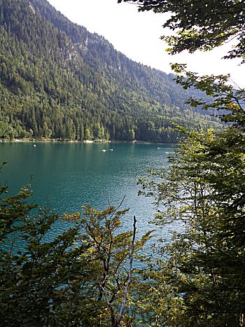 Ook een mooi kasteel om te bezoeken is Hohenschwangau. Via het dorpje omhoog wandelen is heel goed te doen. Alhoewel er ook een koets omhaag gaat. Het ligt lang niet zo hoog als Neuschwanstein en is een stuk kleiner en heel anders maar zeker leuk om te bezoeken. Het was er niet zo druk als bij de ander maar het was dan ook al een stuk later op de dag toen wij er aan kwamen. De heenweg naar het slot hadden we genomen langs de trappen en op de terugweg hebben we de langere route over de weg genomen. Die heeft dan ook weer mooie uitzichtpunten zoals die over het meer. Prachtig om ook dat te bekijken.