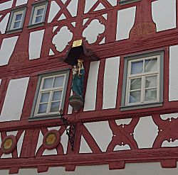 Het plaatsje Lauda-Königshofen was niet zo heel leuk en opvallend veel rustiger dan de vorige plaats. Het heeft wel een historische stadskern met vakwerkgebouwen. Ook is er een stadspoort Oberes Tor en Pulverturm (kruittoren) als overblijfselen van de middeleeuwse versterkingswerken. De volgende dag besloten we als eerste het “weinlehrpfad” te volgen. Dat is een kleine wandeling in het plaatsje Beckstein wat ook hoort bij Lauda-Koningshofen. Dit pad laat met borden (in de vorm van een wijnglas) allemaal informatie zien over het maken van wijn terwijl je over de helling langs de druiventrossen loopt. Het was een flinke klim omhoog met uiteindelijk een mooi uitzicht over het plaatsje. Daarna weer via de andere kant naar beneden gewandeld en het was zo een mooi rondje en goed te doen met ruim 1,5 kilometer. Een leuke route om even te wandelen en soms kun je deze route ook met een gids lopen maar op eigen gelegenheid is zeker ook leuk en je kan de borden bekijken met wat er allemaal is.