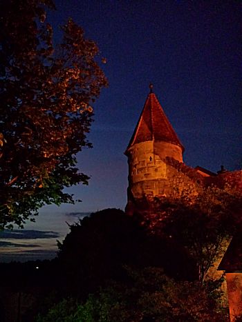 In Rothenburg ob der Tauber waan je je echt in een andere tijd. Daar hebben ze een prachtige ‘ouderwetse’, of zeg je beter historisch, stadje waar ontzettend veel te zien is. Echt een romantisch karakter. Ook hadden we gelezen dat het ’s avonds mooi verlicht was in het stadje, dus rond half tien ’s avonds zijn we weer richting het stadje gelopen om weer wat te bekijken met verlichting. Dat viel ons een klein beetje tegen omdat er wel wat dingen verlicht waren maar zeker niet de hele stad. Toch was het weer een leuke wandeling met weer nieuwe gezichtspunten. Ook hebben we een traditionele ‘Schneeball’ gekocht en gegeten. Wel aardig en inderdaad zie je die nergens. Het smaakt echter niet naar veel bijzonders.