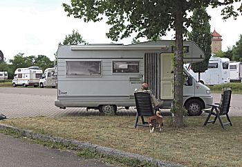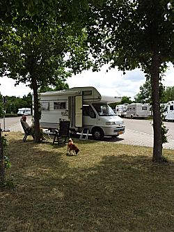 Het plaatsje Rothenburg ob der Tauber heeft twee camperplaatsen. Wij stonden op P2. Een mooie grote parkeerplaats waar heel wat campers kunnen staan. Er zijn mooie plekjes bij als je een beetje geluk hebt. Het sanistation op de camperplaats was defect en je kon wel legen maar geen water innemen. Dus heb ik eerst met de opvouwbare jerrycan maar even water bij de wc gehaald. Dan hebben we in ieder geval wat te drinken als het zo warm is.