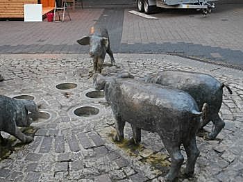 Daarna het kuurpark bekeken dat zo indrukwekkend groot en mooi was dat we er erg lang bleven. En de zon scheen ook zo lekker. Zeker de moeite waard om door heen te slenteren.In het voetgangersgebied hebben we nog foto's gemaakt van de Varkensbronnen. Deze is ter nagedachtenis aan de oprichting van de stad, die als legende verteld hoe de pekel bron ontdekt werd.